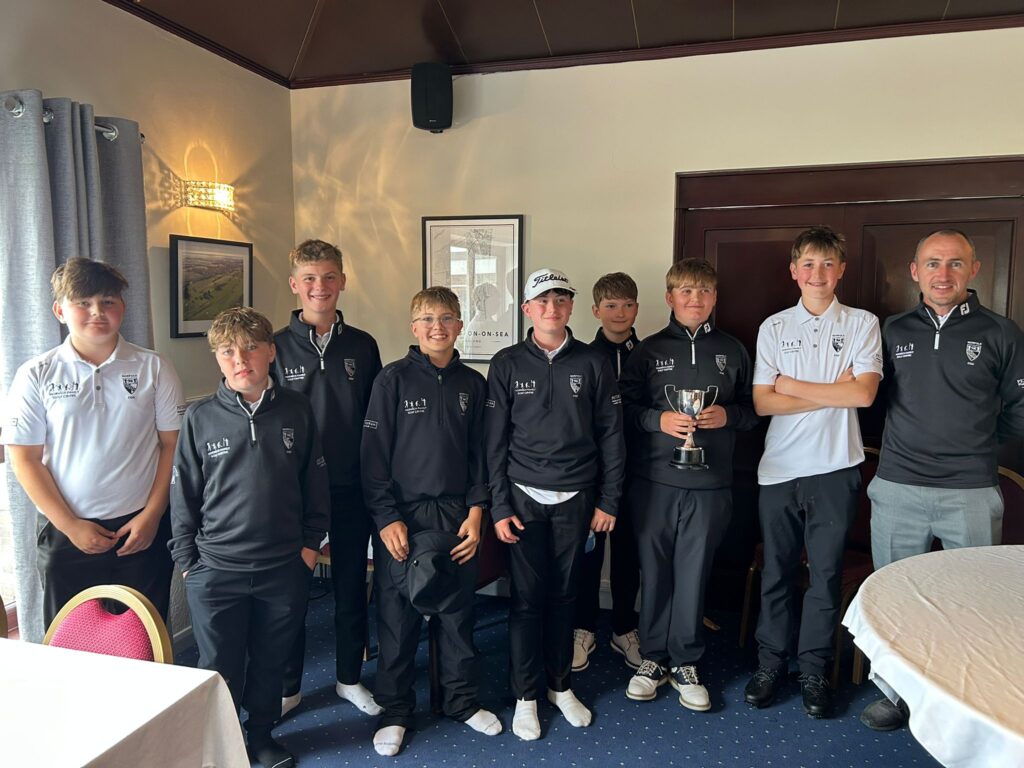 The Norfolk U16s team (pictured with team manager Greg Caffyn) beat Suffolk and halved with Hertfordshire at Royal Norwich GC in their South East League home fixture last weekend.