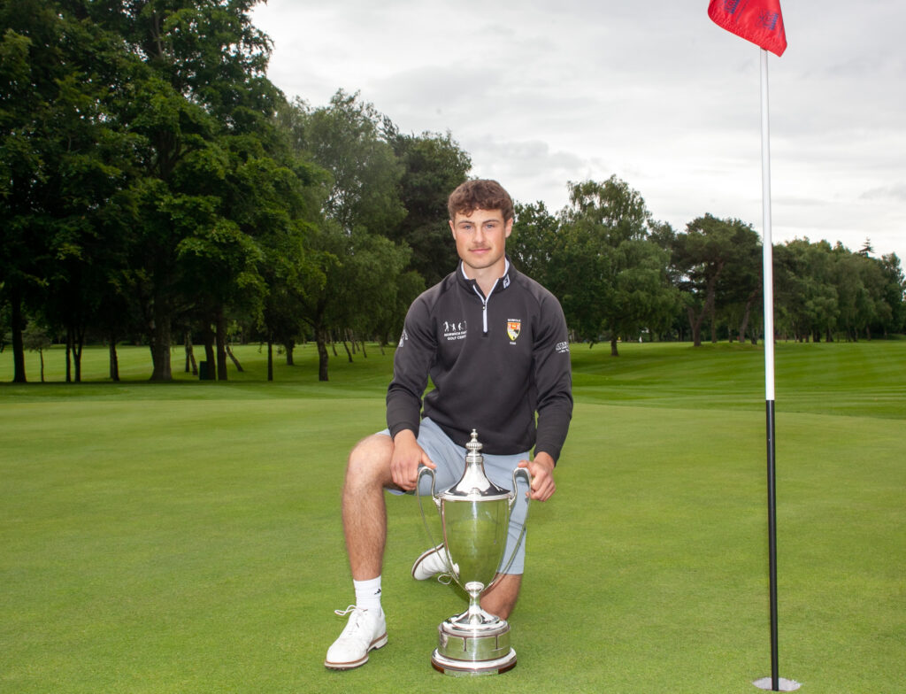 Ed Featherstone from Sheringham Golf Club with the County Amateur trophy after his successful defence 12 months ago. Can he make it three in a row?