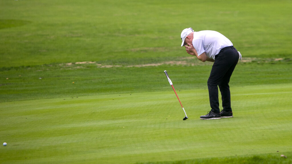 Blair Ainslie’s reaction to an agonising miss with the putter sums up Norfolk emotions as the host county narrowly missed out on Senior Foursomes glory.