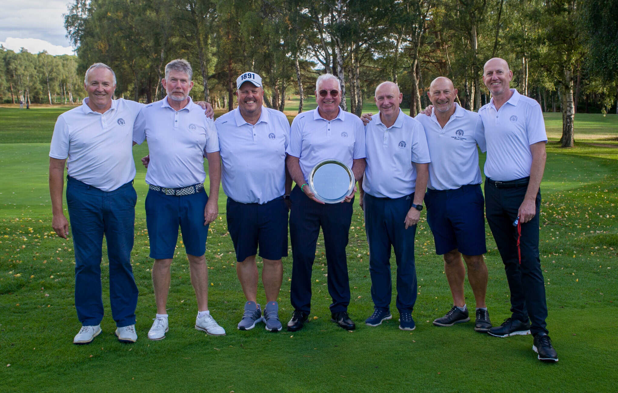 Captain Gary Brayshaw and the 2025 Norfolk Seniors Scratch Knockout champions, Sheringham Golf Club