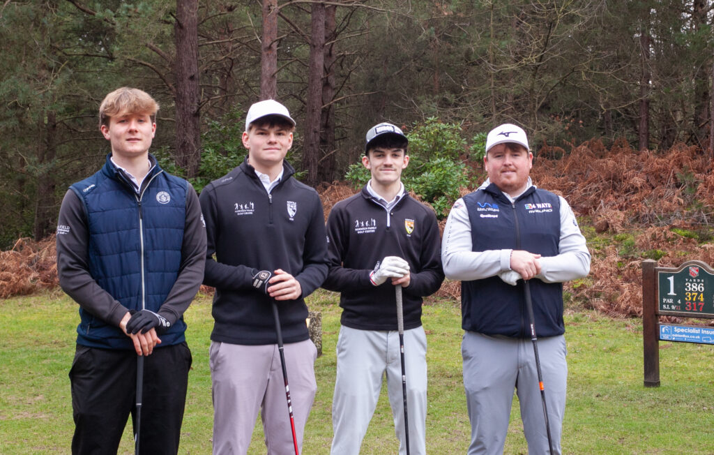 Jack getting ready to tee-off the 1st hole at King’s Lynn GC with Theo Pudney, Sully Goddard and Liam Caffyn.
